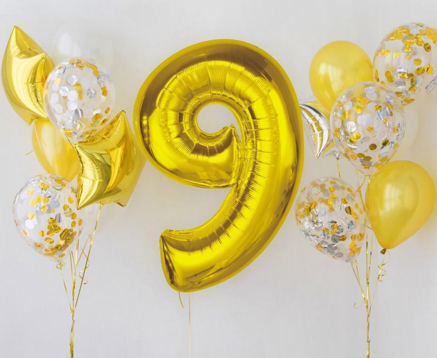 Arany 9-es Gold szám fólia lufi 92 cm