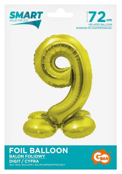 Arany 9-es Gold szám fólia lufi talppal 72 cm