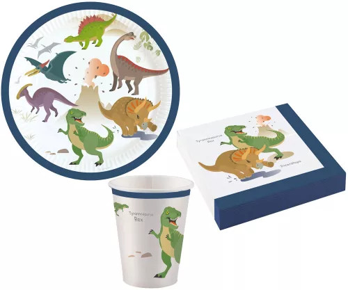 Happy Dinosaur, Dinoszaurusz party szett 36 db-os 18 cm-es tányérral