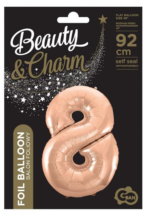 Rose Gold 8-as szám fólia lufi 92 cm