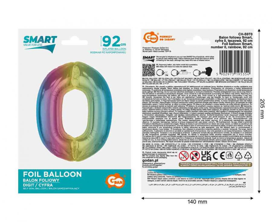 Színes 0-ás Rainbow szám fólia lufi 92 cm