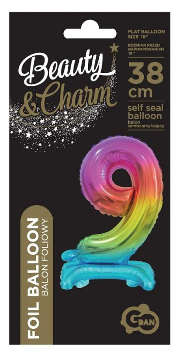 Színes Rainbow mini 9-es szám fólia lufi talppal 38 cm