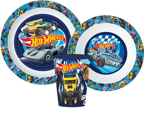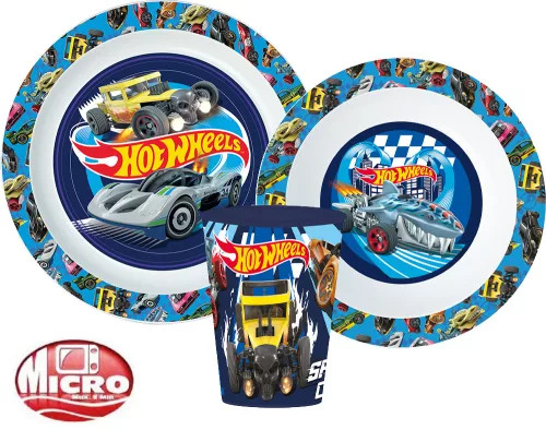 Hot Wheels Blue Fire étkészlet, micro műanyag szett pohárral 260 ml